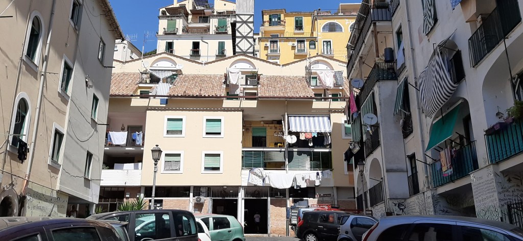 Salerno – what a gorgeous town. We had been in Italy for a few weeks now, but not the mainland. We were not sure what to expect for a town so near the Amalfi coast but we were really impressed. We anchored in the large bay and took the dinghy over to the town wall to tie up, but were approached by a very excitable man. We understood we were not allowed to tie up there and with waving arms and talking ten to the dozen, he showed us where to go. We had to then clamber up some rocks and climb over a fence to get to the road – all fun and games. As is so often the case with these ancient towns in Europe, there was a castle high up overlooking the bay, but we never actually got up to see it as we were using Salerno as a base for the Amalfi coast and Pompeii.