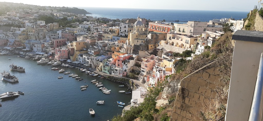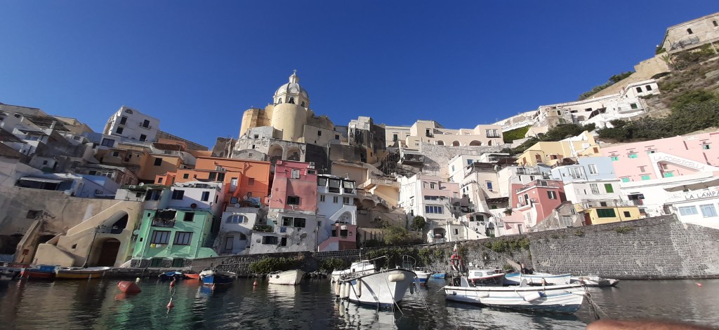 Time was pushing on and we wanted to get to Rome. We decided to sail up and stay in a marina nearby rather than train it from Salerno. It was a 3 day journey and we stayed at the small island of Procida on the way. I love the small Italian coastal towns. They paint the houses a different pastel colour and typically have restaurants along the waterfront and then many steps up to the hill above where there’s normally a castle. Procida was no different, so off we went, climbed to the top checked on Indian Summer and headed down for a drink by the water. Yes – a perfect evening in a beautiful setting.