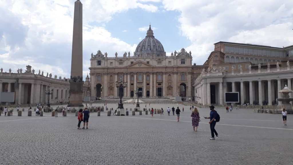 Next we walked to St Peter’s Basilica and St Peters Square. Before we came to Rome, we had imagined our visit packed with thousands of other tourists, getting hot and not being able to see much. Well, with COVID we were really lucky as Rome as empty. No foreign tourists, no tours with people waving flags, no shouting to be heard at the back… It was wonderful. August and we had Rome to ourselves!