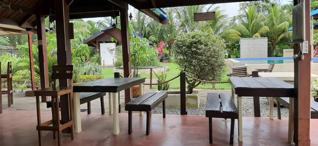 We were really pleased with our choice- the staff were fabulous, the manager Nettie was so helpful and it had a petrol station and shops all within a 5 minute walk. The meals were tasty and cheap, Ian loved the cheap rum and the pool….. being in the tropics only 5° off the equator was a godsend.