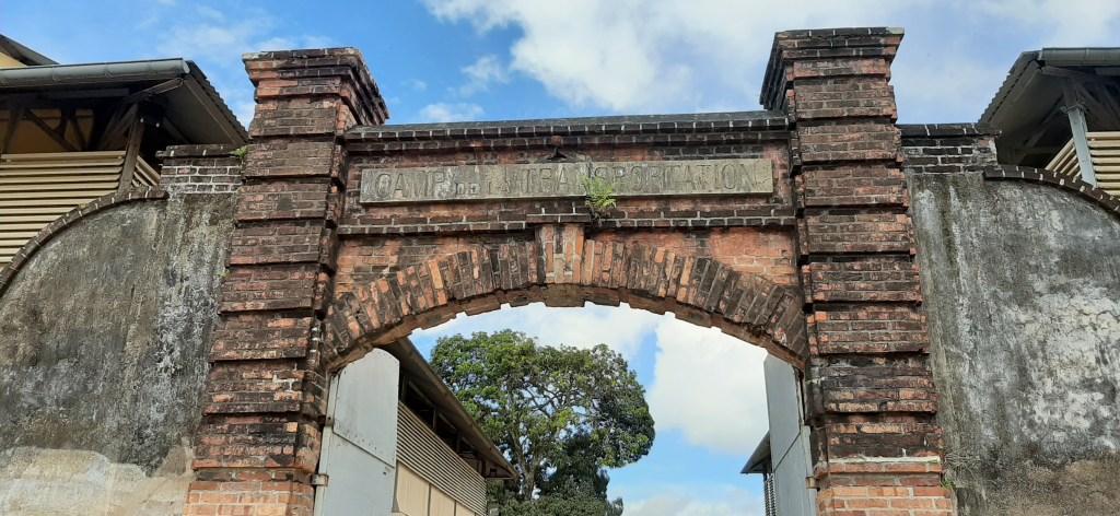 We then went to the Camp de Transportation. The notorious penal colony of Saint Laurent de Moroni, where about 70,000 French convicts were sent to over a hundred year period ending in 1946. The most famous inmate was a man called Henri Charriere, who though claimed innocence, was convicted of murder. Known as Papillon, He eventually escaped to Venezuela. Unfortunately we had missed the tour so we could see Papillon’s cell no 47 where he had engraved his name, but I did manage to look through the bars and saw the tiniest cells – 1.8m x 2m where they slept. I have visited a few prisons but never seen such a small cell before.