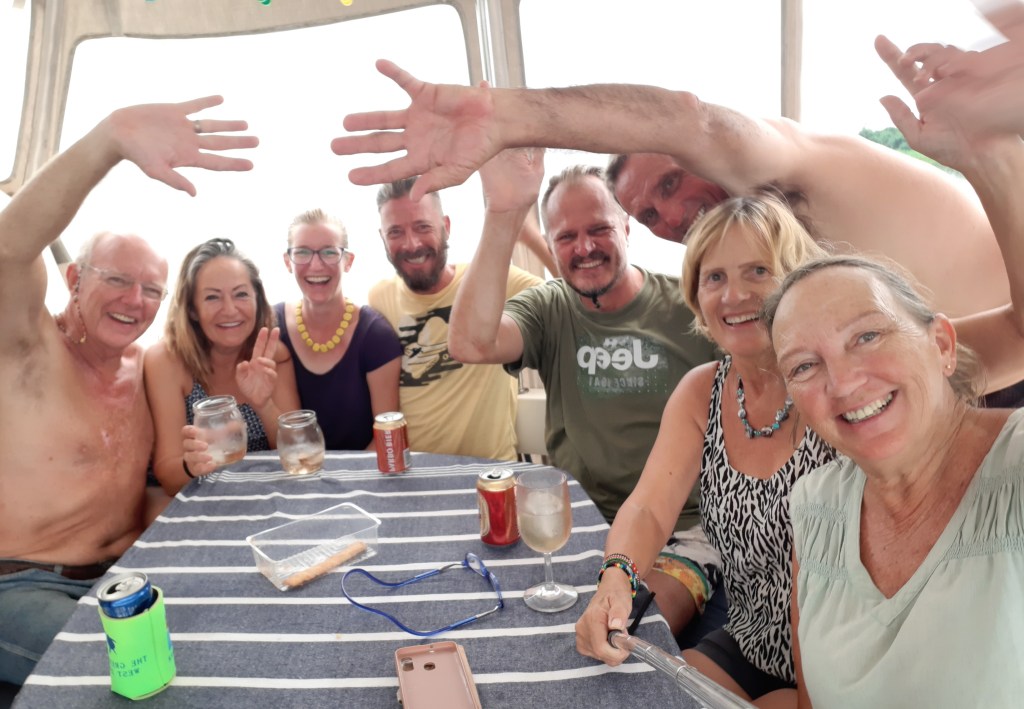 Our friends Brett and Mandy from Leventeia came down to meet us and Frik and Petro from Sisu sailed down later in the day bringing with them Paul and Kirsten from Ikigai. We had not seen Brett and Mandy since Lamu in Kenya so it was a lovely reunion. Ikigai & Sisu we had both seen within the last year. They all rocked up and we had some drinks on Indian Summer – a fabulous welcoming committee.