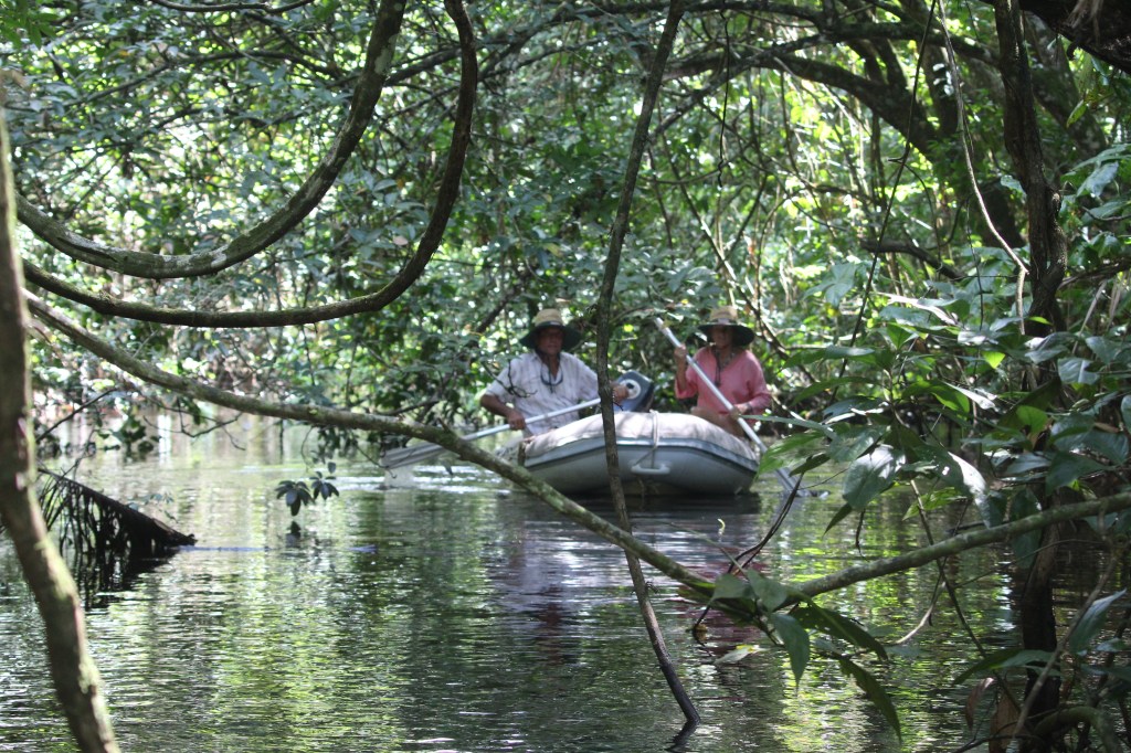 As we ventured further down the Commewijne river, we found ourselves completely alone. We saw no houses, no other boats and no form of human habitation at all. The only noises were the birds and sometimes the monkeys – it was one of the most peaceful places we had ever visited. We took the dinghys down some of the smaller creeks and tried to ‘go with the flow’ as much as possible which meant no engine – just the current pulling us along. There were times when the trees were overhanging close enough on either side of the creek to enable the monkeys to fly across – amazing.