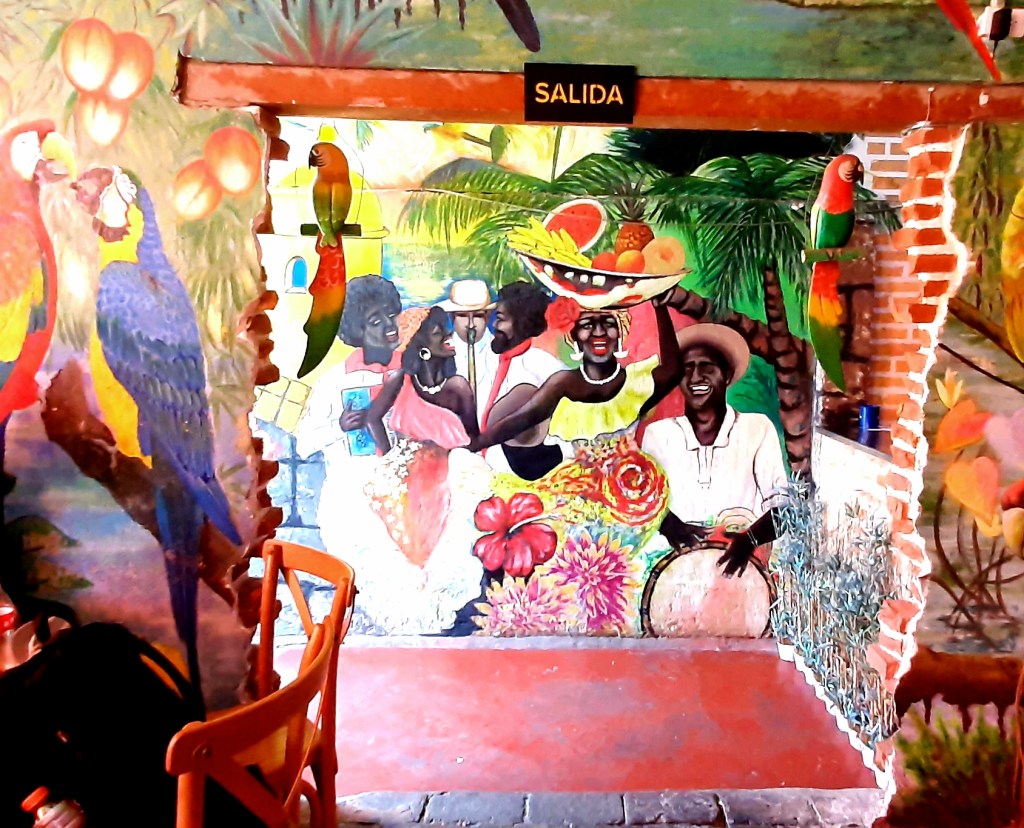 We visited one of the huge malls and did a huge shop – they had a fantastic homeware shop and big supermarkets so we stocked up on everything and taxied it all home. We spent time wandering around the old city just watching the world go round and eating meals with Mildred and Keith. Cartagena is a ‘people watching’ place with loud Colombian music blaring out of every street corner. There were people selling cigars, postcards and all manner of tourist paraphernalia on every street corner. I loved it. Everything seems so bright and colourful and their artwork was incredible. No wall was left unadorned and there were paintings for sale up many of the side streets. The standard of artwork was very high and the prices very reasonable – and yes, we bought some.