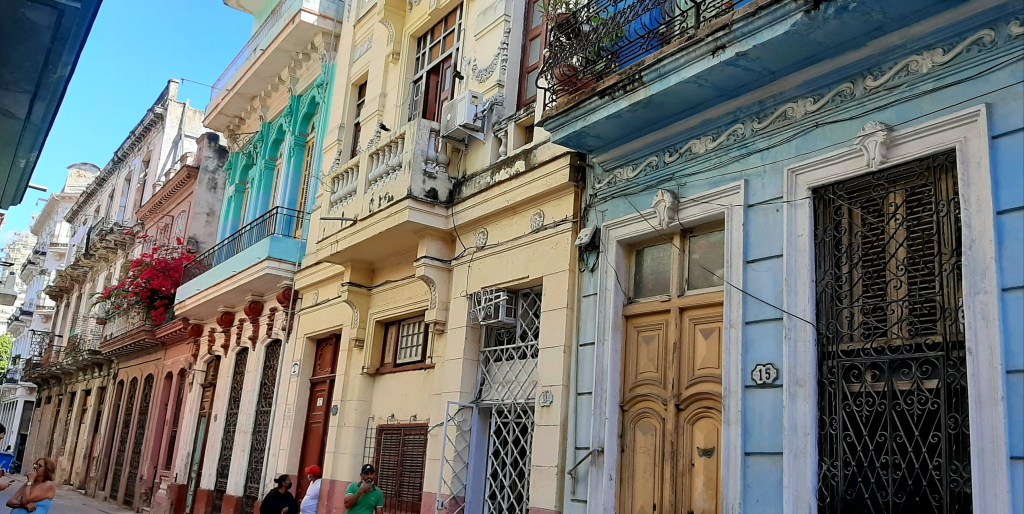 That evening we went out on pub crawl, visiting lots of funky bars and somehow ended up back in Floriditas. There was a Cuban band and lots of people enjoying cocktails – the ambience was wonderful and we felt like it had already become our local. Dinner was so-so, but mainly because they have so little variety of produce. A salad was just a sliced tomato with a lettuce leaf and mainly fish in a sauce. Lobster seemed to be everywhere but little meat. After dinner, we wandered back and opened one of our bottles of Havana Club and sat on our tiny balcony to watch the world below. People hanging out their washing, men on the street sharing a cigar, and women leaning over their balconies talking to their neighbours. Just brilliant…