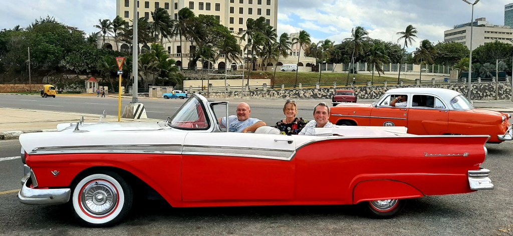 We decided we had to go for a ride in one of their vintage cars. The ones in the centre of Havana are specifically for the tourists and are not only totally renovated but shining… most of them are still owned by the grandsons or even great-grandsons of the original owners and they are the livelihood for the whole family. We chose a 1953 Ford Fairlaine as we wanted to ride in a red convertible. We then spent an hour driving round Havana, being shown landmarks, famous hotels and the waterfront. It was brilliant fun and something very different.