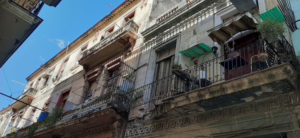 Our first evening was spent wandering the beautiful old city – so beautiful and so full of life albeit with many crumbling buildings. They are trying to renovate some of them with the tourist dollar but most are private houses and their incomes are far too low to be able to afford house maintenance. Cuba has many large open spaces, with magnificent government buildings and statues, but the back streets are very narrow and most of the house only have about 5ft of frontage but go back 4 or 5 rooms deep. Our apartment was on the 4th floor and the entry was just a door’s width, leading straight onto a staircase. Basically the front door and staircase was shared by all the apartments in that particular house – odd but functional.