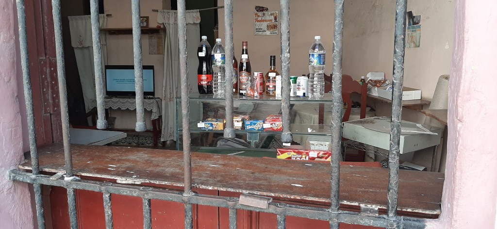 When we were wandering around, we found very few shops except for tourist t-shirt shops. There was one supermarket we found that had a few more basics than we had in Cienfieugos but still very little. What was surprising was that some people just sold a few items from their living rooms – barred so no-one stole them, but an eclectic array of anything they could sell.