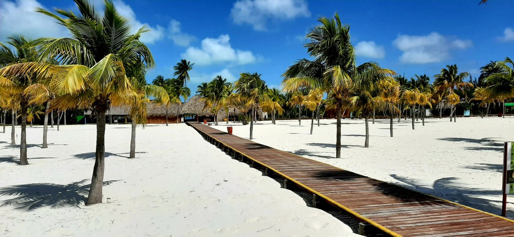 We spent the night here and set off early the next morning for Cay Largo. We anchored this time off a stunning beach, with many thatched shelters and sunbeds and no people. We literally had the whole beach to ourselves. It was the beach for a resort which was closed, and there were walkways, bars and dining areas – all empty. We spent the day lounging around, relaxing and swimming. It was one if the best beaches we have come across and we felt very privileged to have it all to ourselves.