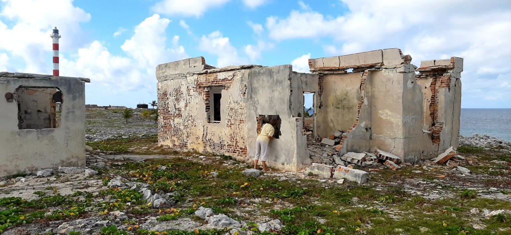 En route to Cay Largo we stopped at a small island which had a lighthouse with 2 lighthousemen who have to stay for months at a time. We had been told they welcome boats as they never see anyone and appreciate some gifts. We hadn’t even dropped anchor before this little boat arrived offering us two huge lobsters and some fish. We gave them a bottle of rum, a couple of caps and some beer and they were really happy. The next morning we went ashore and discovered some ruins which at one stage would have been the accommodation we assumed. The guys now live in the lighthouse itself. The island was dry, rocky and very inhospitable – not your average tropical island. We felt for the guys spending months at a time with so few visitors.
