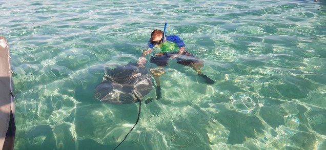 After lunch we went for a walk. Some of the resorts had blocked the beach access from the road but where you could see through – the water was bright turquoise and so crystal clear. We walked along the beach and found a friendly sting ray literally playing on the waters edge. It was practically tame and let us put our hands into the water right beside it. Most rays will shy away so this one must have felt very safe with us – a good sign that they are well protected.