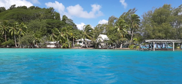 While we were there a huge swell came up and we were told by the authorities that we were not allowed to go out to sea. They were expecting 8-10m but we don’t think they got that high. We were inside the reef though and the size of the waves crashing on the other side of the reef was incredible so maybe the swell did hit 8m. Either way we stayed tucked inside and just took the dinghy along the inside reef to explore a bit more of Huahine. We passed lots of the little huts over the water that French Polynesia is famous for and eventually found a magnificent anchorage which was more like a mini harbour.