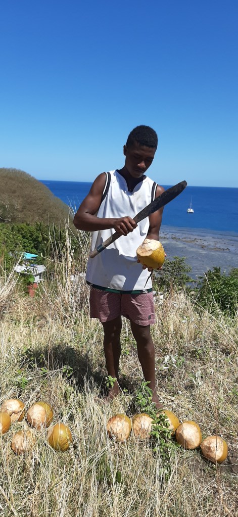On our way back to the village we were met by some young guys with coconuts – very entrepreneurial young men – everyone in the village knew we were here and they were so happy to have us. We visited the school and were shown around by one of the teachers. As there are so many different dialects in Fiji – the kids are all taught in English which gives them good opportunities later for working in New Zealand and Australia. They only go to school until Yr 8 in the village and then they have to go to Lautoka – the main town on the big island, to finish their education. With very few work opportunities on these islands most don’t return home unless they want to work in either fishing or at one of the resorts.