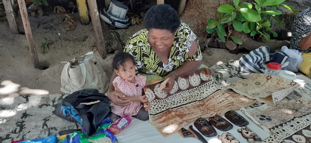 After our walk we came back to Jim’s house and the women brought our their souvenirs for us to look at. We all bought something from them before taking a wander through the village. Everywhere we went we were greeted with “Bula’ which means hello and welcome. We were generously invited to share lunch with three houses and everyone wanted us to come into their homes. These really are a very special people – genuinely friendly and trusting.