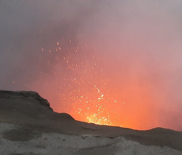 We were joined by another cruising family and headed up to the summit. I had been to a few volcanoes – but this one was by far the most exciting. The loud roar every few minutes followed by an eruption of red hot lava was quite frightening at first and as the sun went down it got more impressive. The only safety was a young guide pulling her bare foot along the dirt about a metre from the edge leaving an indent in the dust with the instructions not to stand over the line! I couldn’t even go that near but had my selfie stick so I could take some photos. We stayed for a while until we got cold and then left with our ears ringing from the loud roars and memories of being the closest to a live volcano people can get. A bumpy journey back to the beach to find our dinghys ended a very adventurous day.