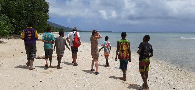 The next day Rob took us around the island – he knew everyone and he even took us to his parents home where he grew up. He showed us the fruits they eat which just seem to grow everywhere but he assured us that they were all owned by someone. We visited some of the eldest villagers who are well looked after by all the villagers. We ended up having lunch in his home- a typical Vanuatian lunch of fish, papaya, rice and eggs. His wife gave me a beautiful mat made of rags which were twisted tight and wound round and round. We had given the village some clothes and we think that these mats are probably made from some of the donated clothes- I wonder if any of my old dresses will end up as a mat!