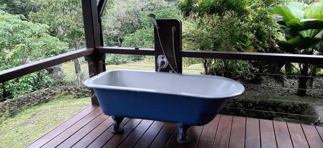The next day we went back to meet them both for coffee at their holiday house. Set high up overlooking the private beach and the bay, we had coffee on the verandah and heard all about the cyclone that had gone through a couple of years ago and stripped all the foliage from every tree on the estate. It had decimated the crops and put them back years. They had worked so hard to get it back to production and they were winning. The holiday cottage had been a very good idea and was quite lucrative – they had done a fabulous job including a bath on the verandah with a view to die for. They are heading to Perth in the not too distant future so hopefully we can catch up again